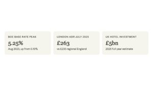 The past three years have made this problem impossible to ignore. Between March 2020 and August 2023, the Bank of England base rate moved from 0.10% to 5.25%. That’s not a rounding error — it’s a fundamental repricing of hotel investment economics. The same asset, the same RevPAR, the same operator can now produce materially weaker equity returns simply because the cost of the debt sitting beneath it has tripled.